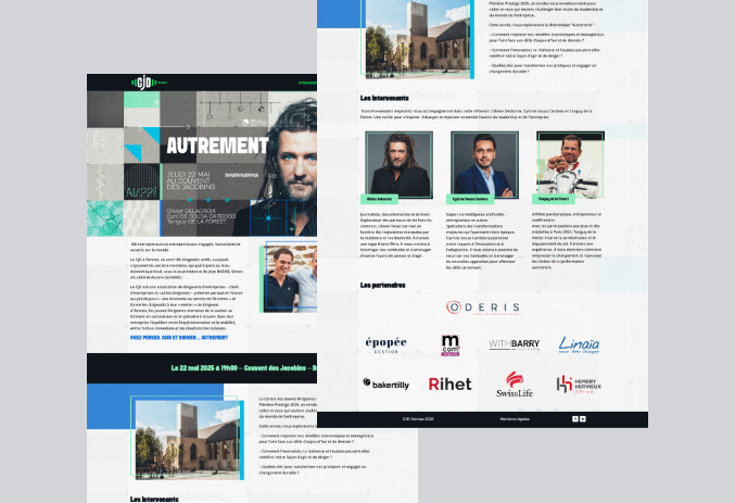 En tant qu’UX-UI designer, j’ai conçu une expérience responsive centrée sur l’utilisateur, mettant en avant les moments clés de l’événement et facilitant le parcours jusqu’à l’inscription.