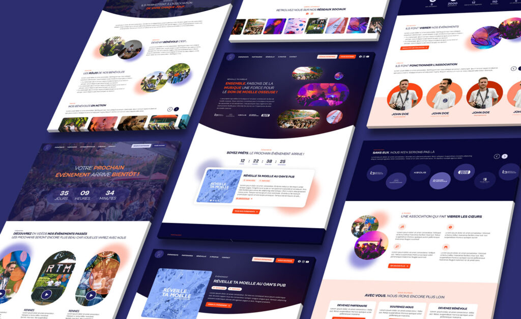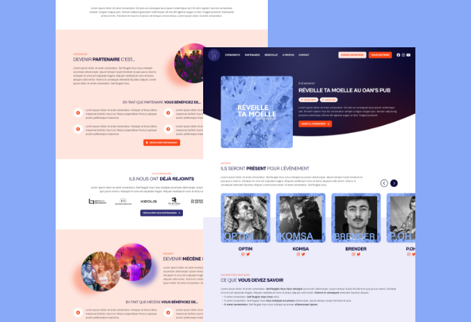 Ma mission a consisté à concevoir une interface web à la fois engageante et intuitive, en imaginant un univers visuel mêlant engagement citoyen, culture urbaine et expression artistique. J’ai ainsi réalisé l’ensemble des maquettes UX/UI du futur site, en veillant à proposer une navigation fluide, un accès rapide à l’information, et une identité graphique cohérente avec les événements portés par l’association : soirées, expositions, livestreams et festivals.