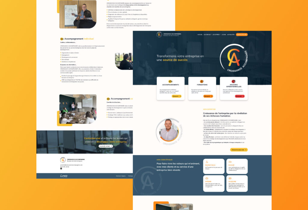 J’ai conçu le site vitrine de Croissance Accompagnée, une structure dédiée à l’accompagnement stratégique des dirigeants, cadres et équipes en phase de transformation ou de croissance. Le design met en avant les différentes offres (accompagnements, formations, missions opérationnelles) et outils proposés, tels que le modèle DISC, tout en reflétant une identité professionnelle, humaine et accessible.